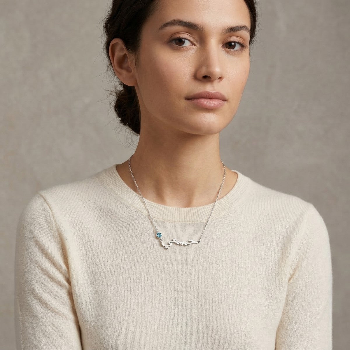You can personalize your necklace according to your needs. We recommend avoiding special characters or spaces to ensure the nameplate remains sturdy and the overall design looks seamless and elegant.