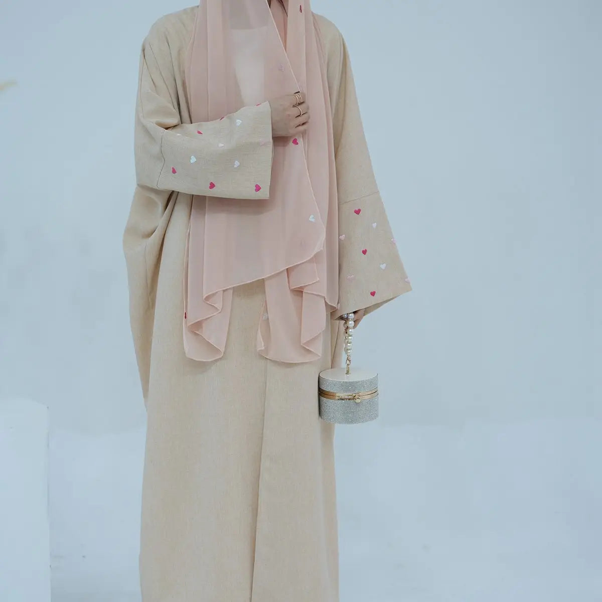 فستان عباية مفتوح من كارديجان مطرز على شكل قلب